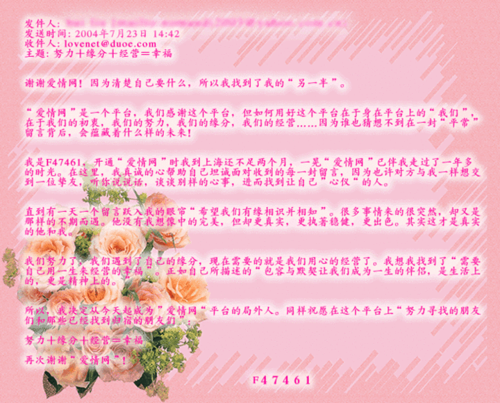 爱情网 - F47461 努力 + 缘分 + 经营 = 幸福