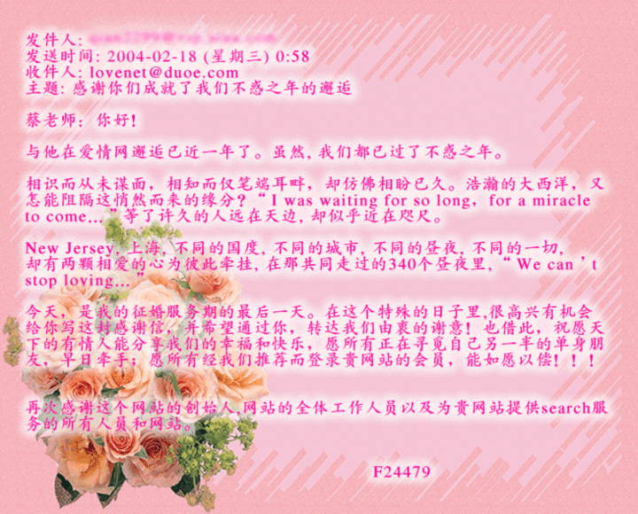 爱情网 - F24479 感谢你们成就了我们不惑之年的邂逅