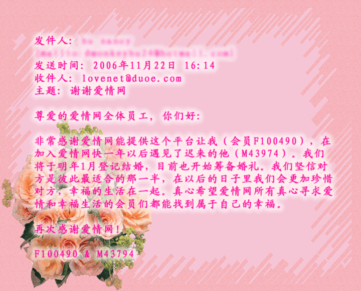 爱情网 - F100490 M43794 我们坚信对方是彼此最适合的那一半